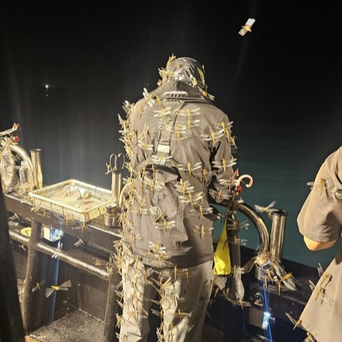 열대기류와 태풍 등 기상의 변화를 감지한 된장잠자리들은 수백만 마리씩 무리를 지어 1000미터 이상의 고도에서 바람을 타고 바다를 건너갑니다. 이동 중에는 공중 플랑크톤이나 소형 곤충을 먹으며 에너지를 보충하고, 섬에 빗물이 고여 있는 웅덩이가 보이면 잠시 내려 번식 활동을 합니다. 이곳에서 알을 낳고 자란 애벌레들은 성체가 되어 다시 이동 대열에 합류하게 됩니다.