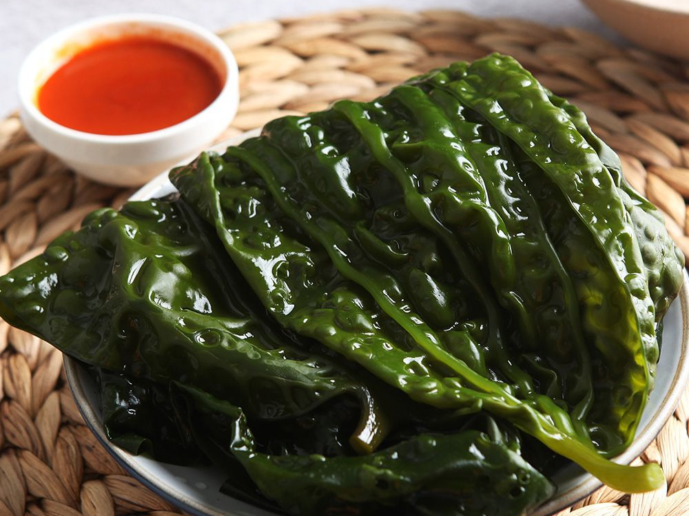 - 사용법 - 데친 물미역을 한입 크기로 썰어 접시에 담고, 초장은 따로 곁들여 찍어 드세요. 잎의 향과 단맛이 살아납니다.