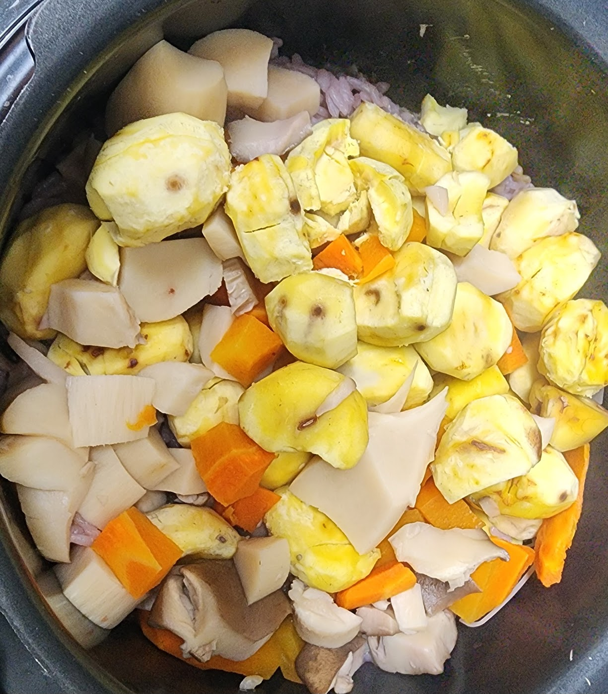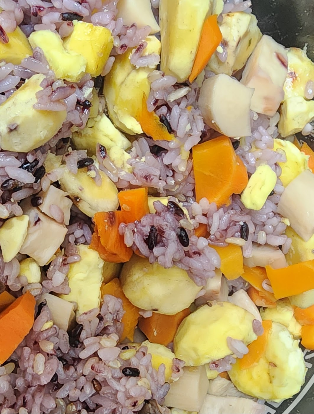 - 취향에 따라 조청 한 큰술을 넣어 함께 쪄주면 윤기가 나고 단맛이 배어든다.