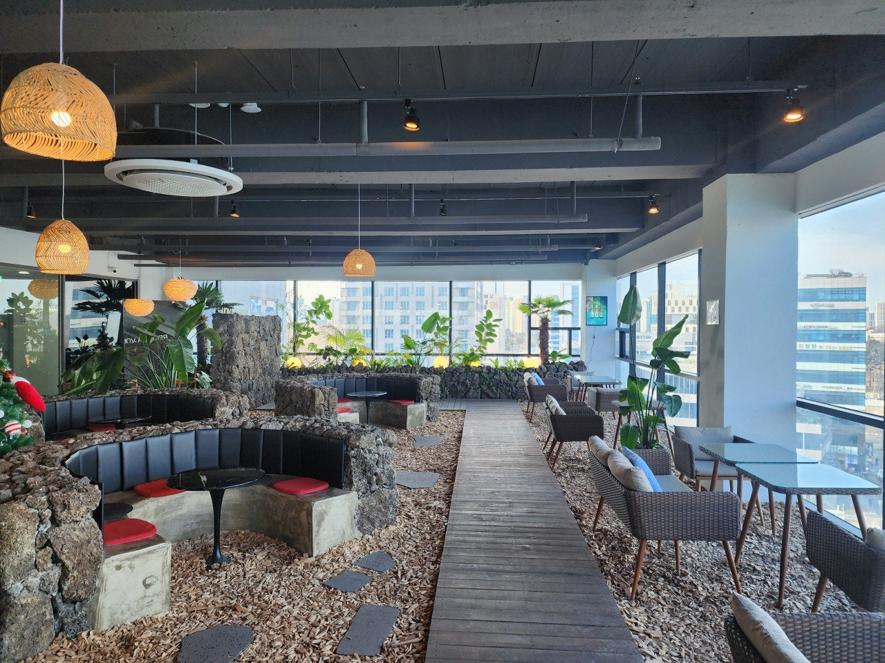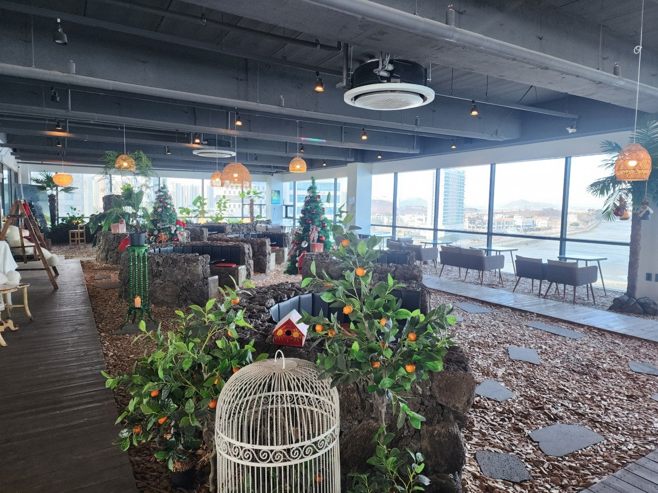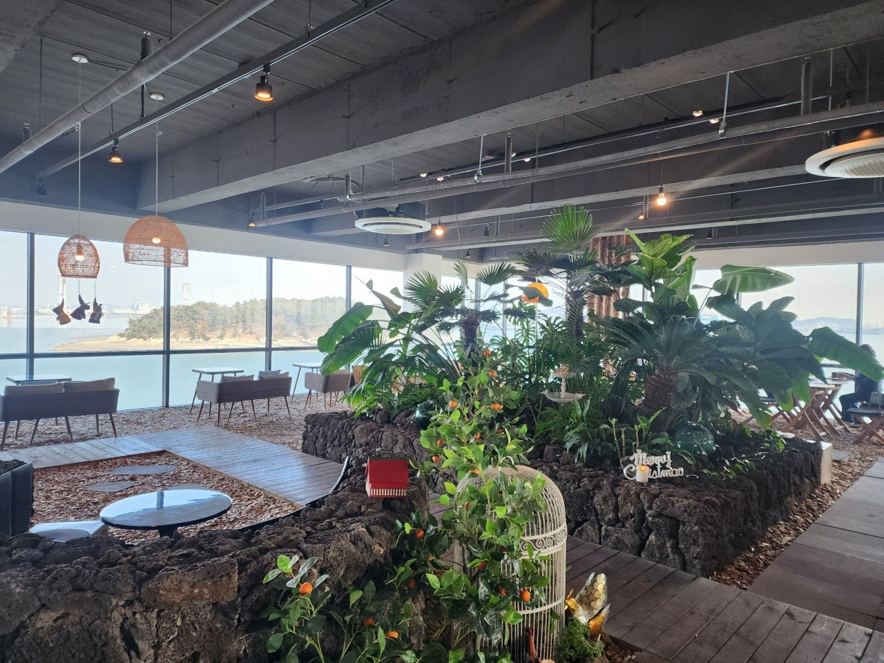 랑데자뷰의 가장 큰 특징은 제주 감성을 그대로 담아낸 인테리어입니다. 매장은 따뜻한 분위기를 자아내는 자연 소재와 제주도를 연상시키는 다양한 오브제로 꾸며져 있습니다. 특히, 넓고 큰 창문을 통해 들어오는 자연광과 바다가 어우러져 방문객들에게 여유로움을 선사합니다. 내부에는 다양한 포토존이 마련되어 있어 친구, 연인, 가족들과 함께 추억을 남기기에 제격입니다. 이곳에서 촬영한 사진은 SNS에서도 인기를 끌며 많은 이들에게 영감을 주고 있습니다.