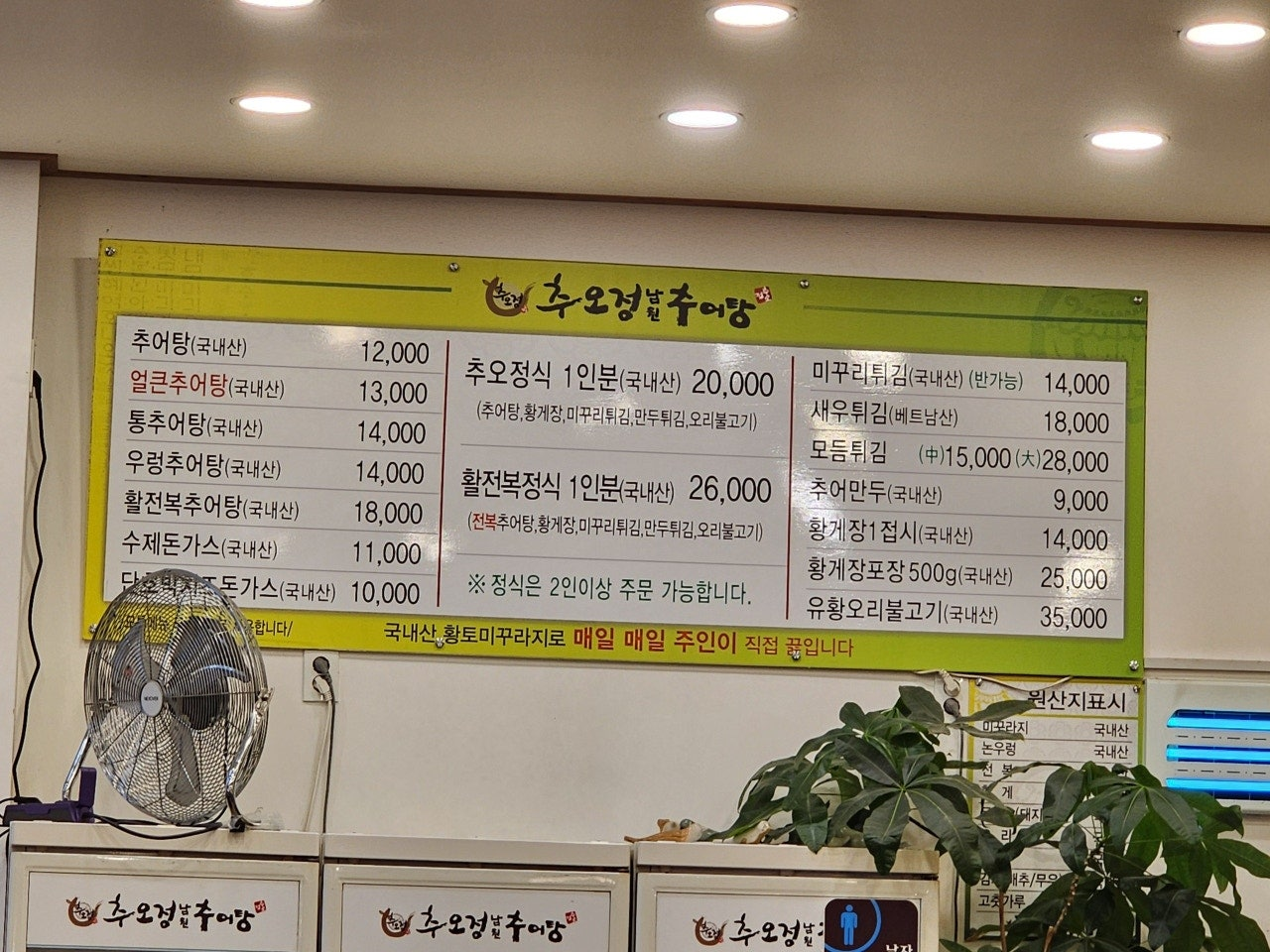 - 포장 가능: 추어탕과 기타 메뉴 포장 가능